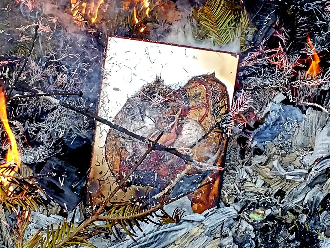 I threw the image into the fire and watched with a little bit of horror as the face of Christ literally melted and crumpled off of the wood. The disposal of icons and other holy items through burning has been a tradition in the church for thousands of years. So I felt like this was the appropriate way disposing of the image. The wood itself started splintering into different layers with loud hissing and popping noises. It was not pretty sight. Within five minutes there was nothing left but ash. There was a part of me that didn’t want to burn the image. It was almost like watching a horcrux be destroyed, if you’ll forgive the Harry Potter reference. I wasn’t sure if burning the image at first was a good idea. It was an image of Christ and I do love the Lord with all my heart. But as I watched this image of the Son of God be devoured within the flames and heat, I was suddenly overcome with a feeling of peace. It was almost as if Christ himself was saying “No this is good. Things that are holy, are Holy but things that are not, are not.” At least that’s what I felt in my soul.