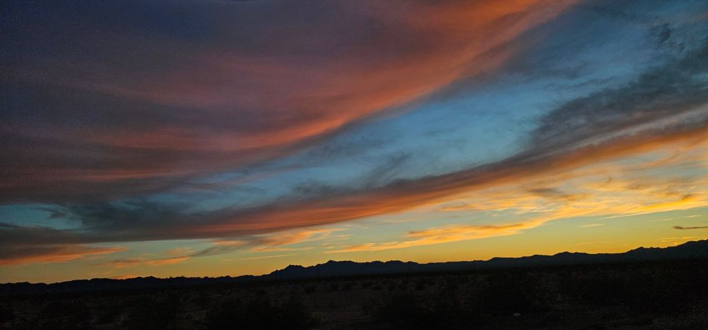 The sun setting on an Arizona road