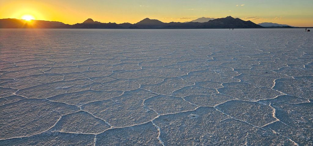 We left Denver yesterday, bound for Reno, and somewhere along the way, I decided to make a stop at the Bonneville Salt Flats. Hamza, my current student, has been doing a great job, and I thought he’d appreciate seeing something unique, something that breaks up the usual routine of highways and truck stops. The flats are something you have to see to believe—this vast, white, almost alien landscape that stretches out forever.